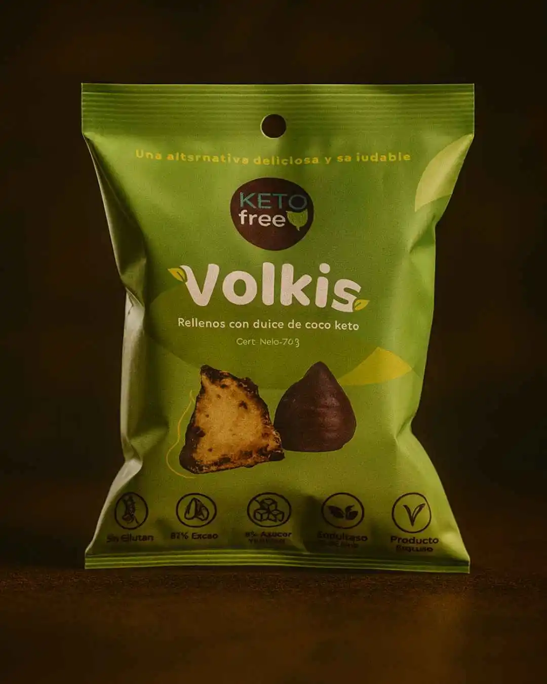 El Volkie Keto Coco es un volcán indulgente y funcional: relleno de manjar de coco orgánico, sobre una base de galleta de almendra y cubierto con chocolate real 80% cacao. Es vegano, sin azúcar, sin sucralosa, sin gluten, sin huevo, sin soya ni lácteos, ideal para quienes siguen alimentación keto o libre de alérgenos. Cada envase incluye 2 unidades con solo 129 calorías y 3 g de proteínas, perfectas para un snack consciente o un postre saludable.